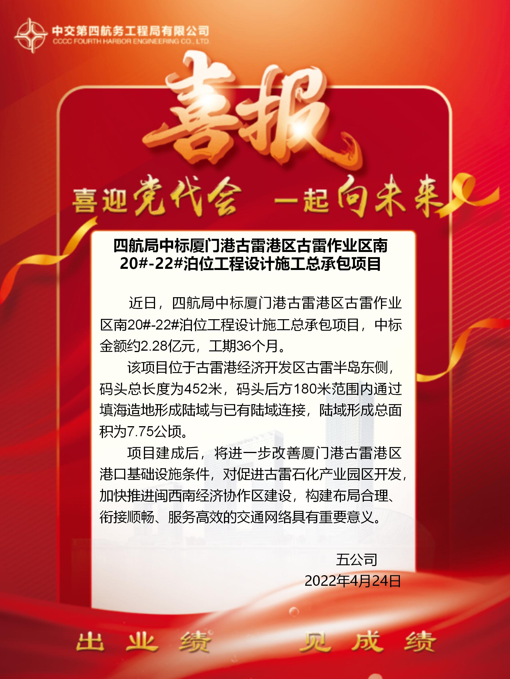 四航局中標(biāo)廈門港古雷港區(qū)古雷作業(yè)區(qū)南20#-22#泊位工程設(shè)計施工總承包項目