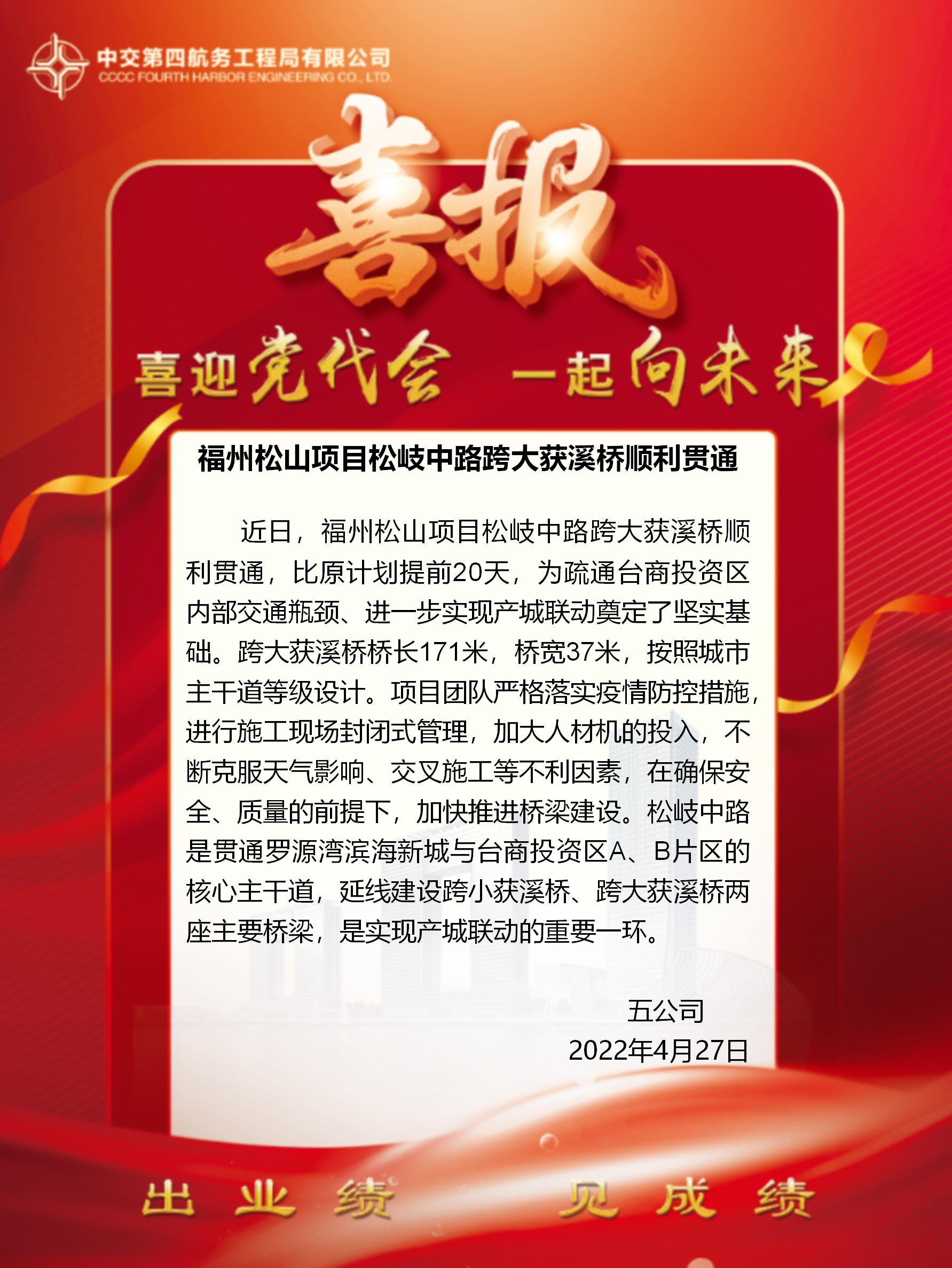 福州松山項(xiàng)目松岐中路跨大獲溪橋順利貫通