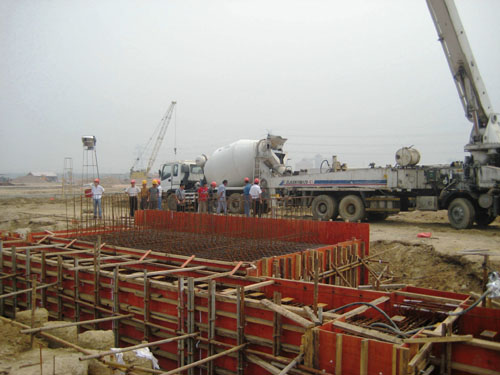 制梁臺(tái)座及橫移小車軌道梁的施工,是當(dāng)前預(yù)制場(chǎng)區(qū)施工的一道關(guān)鍵工序,是按進(jìn)度計(jì)劃開(kāi)始箱梁預(yù)制的基礎(chǔ)。由于前幾天青島地區(qū)普降近百年一遇的大雨,施工現(xiàn)場(chǎng)積水大約3萬(wàn)立方,項(xiàng)目部群策群力,在最短的時(shí)間內(nèi)將基坑的積水排出去。經(jīng)過(guò)緊張有序的前期準(zhǔn)備工作,終于在15日開(kāi)始澆注,并于下午4點(diǎn)澆注完畢,共澆筑完成201立方混凝土。
